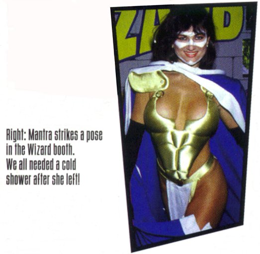 Ever wonder what Mantra might look like in real life? Well, in 1993 Malibu decided to answer that question when they contracted JK2 Costumers to create a costume to be worn during the 1993 San Diego Comicon. Most of the images here were taken from Hero Illustrated magazine, although a couple of the better ones are from the costumer's web site. (You might also try their original web site.)