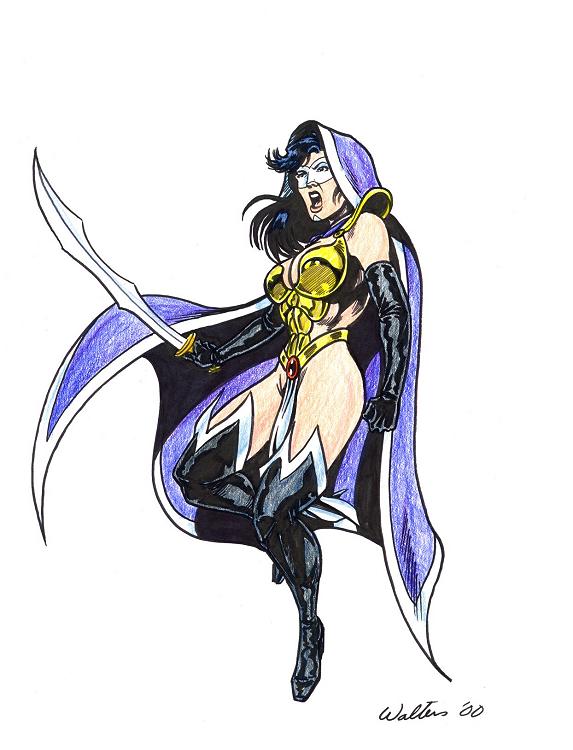Mantra Artwork A nice color sketch of Mantra flying and holding the Sword of Fangs. |