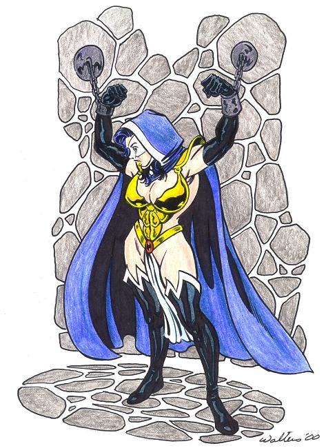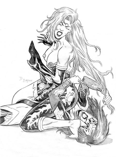 Another catfight picture done in the style of the Mantra versus Electrocute series, this time featuring our heroine venting her aggressions on Zatanna. |