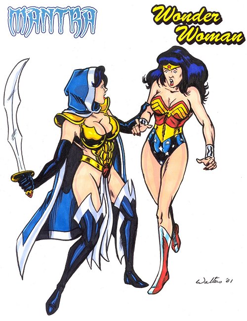 Mantra and Wonder Woman Another great piece by Adam Walters, this time featuring Mantra and Wonder Woman. |