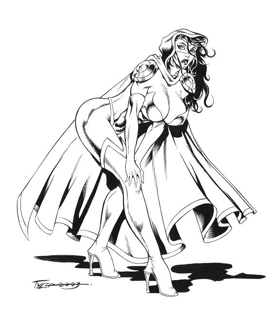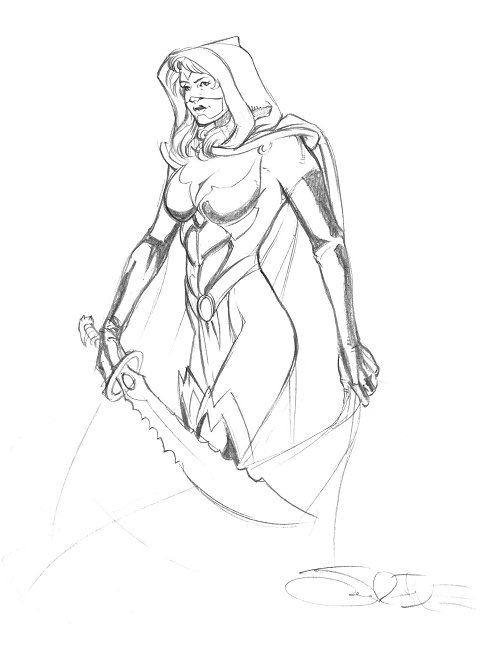 A pretty pencil sketch of our heroine, armed with the Sword of Fangs.