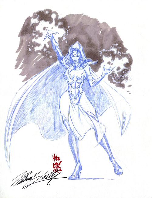 A great pencil and ink sketch of Mantra casting a spell.