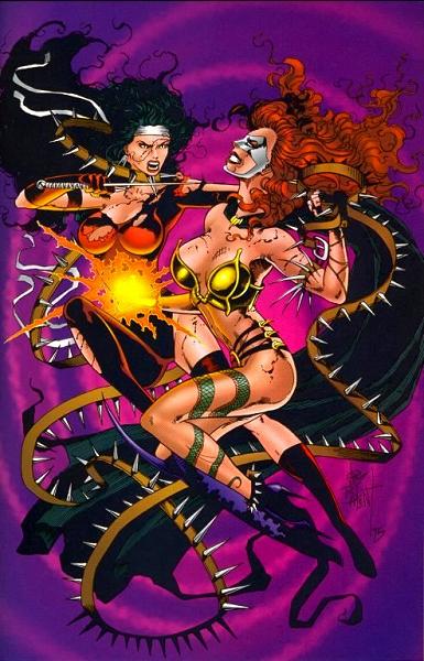 In 1995, Marvel published two books featuring artwork that paired Ultras with various Marvel heroes: "Dream Team, #1" and "Battlezones: Dream Team 2, #1". Displayed below are the images that portrayed Mantra and NecroMantra.