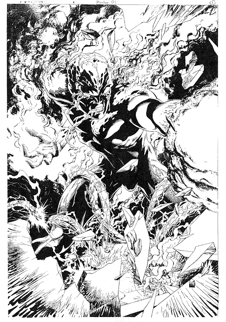 And turns into MANTRA. She goes to fly out of the mansion, and is stopped by a hoard of guards, witches, and party guests in the mood to fight. She fights valiantly and well, fighting her way to the door. Perhaps in here we can have a SPLASH page of her battling. She becomes intangible when someone punches her, uses fire to hold back others, swings her Sword of Fangs, fighting them all away from her, and is just about to reach her goal-- the front door and freedom.