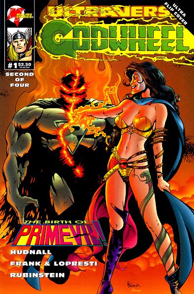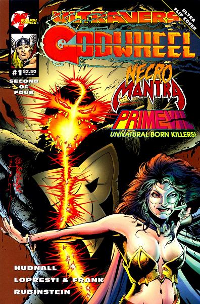 Story Fleeing Argus and Vahdala aboard the Godyacht, Lukasz, Flygirl, Hardcase, Féline, Cayman, Warstrike, Pressure and Boneyard form an uneasy alliance. Their goal: stop Argus from finding the three Keys to the Crucible of Life, the device of ultimate power. Meanwhile, Rune has mysteriously disappeared and Argus has selected NecroMantra and Lord Pumpkin to be his champions of evil. Needing a third individual to track down the final Key, NecroMantra energizes a discarded Prime skin, creating Primevil. Now aboard the Godyacht, the ultraheroes are about to have one of the greatest secrets of the Ultraverse revealed to them...a celestial body of unimaginable size known as the Godwheel. |
