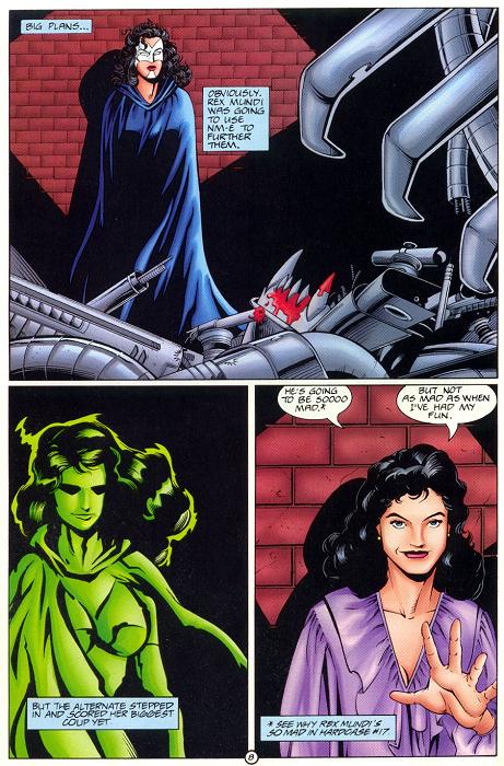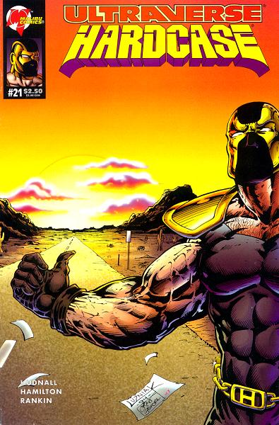 "Hard Road" Quote: "Ugh! You couldn't attract flies with a face like that!" - Hardcase, looking at his scarred face in the mirror. Credits: James D. Hudnall (writer); Tim Hamilton (penciller); Mark Morales & Rich Rankin (inkers) Cover: Greg Luzniak (penciller); Craig Gilmore (inker) Note: The "Mantra" appearance in this issue is brief, and in fact is not Mantra herself, but The Alternate, still in disguise from her appearance in Hardcase #19. |