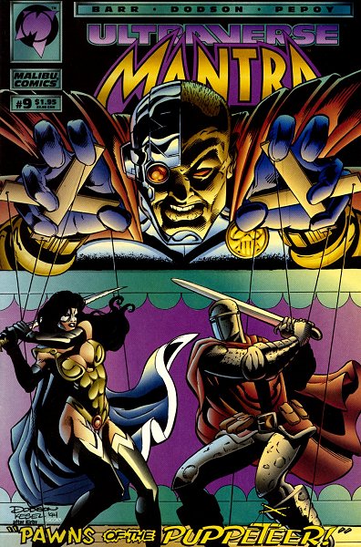 Story Eden's old friend, Lila, has dropped by for a surprise visit to announce her wedding. Mantra is reluctant to be maid of honor. After an embarrassing night at Lila's bachelorette party, Mantra has a dream in which she battles the Iron Knight, who turns out to be her former friend, Thanasi (Mantra #1). Relaxing outside after the wedding, Mantra is attacked, for real, by the Iron Knight. Despite inhabiting Gus Sr.'s body, Thanasi cannot fool Mantra, who realizes Thanasi can take over any body he chooses--his reward for betraying Archimage. Mantra user her magic to send Thanasi's soul into the crippled body of Jim's Uncle Moe, where he must stay untili the old man dies. Eden catches the bridal bouquet, then takes the kids back from a furious Gus Sr., who remembers nothing of their battle. |